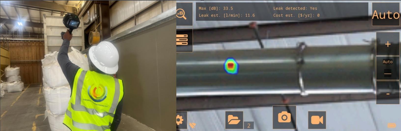 Infrared Inspections LLC has been assisting companies nationwide by incorporating our ultrasonic technology to their predictive maintenance process. Our highly trained and certified ultrasonic analysts conduct a thorough Ultrasonic survey at your facility to determine effective follow-up actions for leak applications. The air (or gas) leak survey will consist of the following: locate the leak, label leak with hanging tag, take digital photo of leak location, and estimate leak rate. A written report will be delivered consisting of: leak locations, digital picture, estimated priority, and estimated total leak rate.